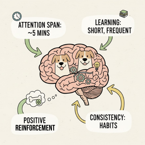🧠 Science says so: Dogs’ attention spans peak at 5-10 minutes. After that, focus drops and frustration rises. Short sessions = higher success rate + better retention.
